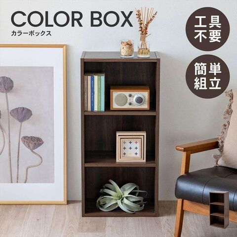 簡単組立3段カラーボックス ダークブラウン β LIFELEX