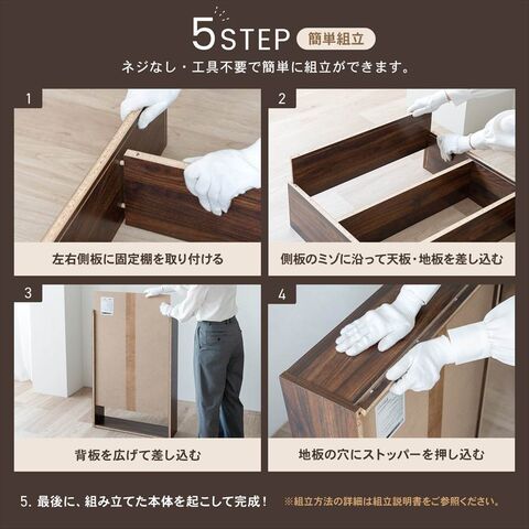 ネジなし・工具不要で簡単に組立ができます。