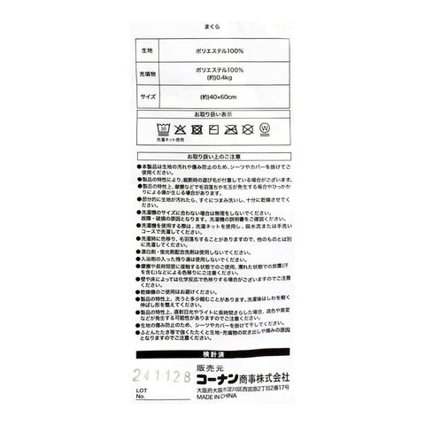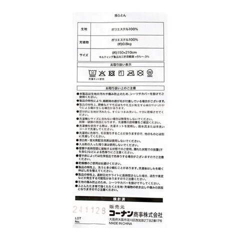 充填物/(掛)ポリエステル100%、(敷)ポリエステル100%、(まくら)ポリエステル100%