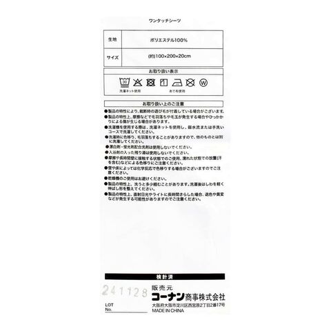 ワンタッチシーツ(約100×200×20cm)、まくらカバー(約43×63cm)