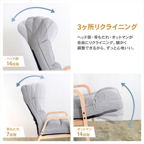 ナチュラル木肘チェア オットマン付カルヴィナ グレー LIFELEX
