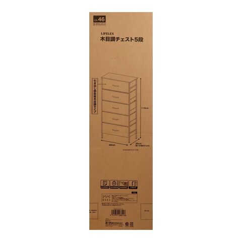 LIFELEX 木目調チェスト5段 DBR/BK 6030-119 ダークブラウン