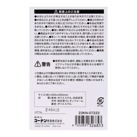 ●革シート(本革・合成皮革)の場合、革の変質・変色の恐れがありますのでご使用にならないでください。