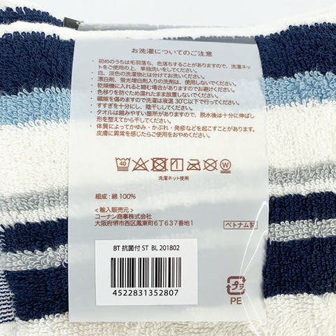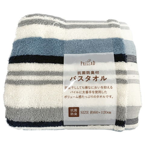 コーナンオリジナル バスタオル ブルー 抗菌防臭ストライプ 60×120cm