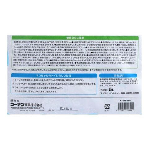 ●主成分:ベントナイト、香料、消臭剤、抗菌剤