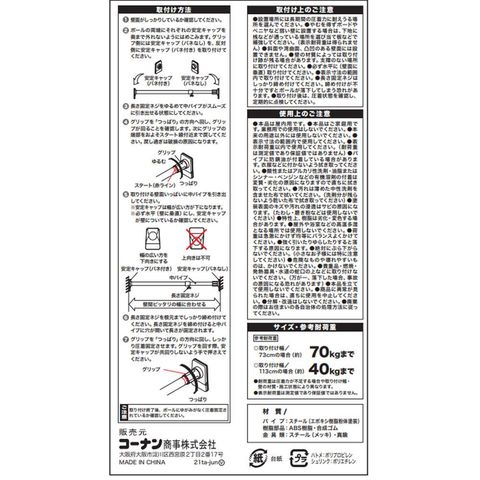突っ張りスーパー極太 ポール大 HON21-8938 コーナンオリジナル
