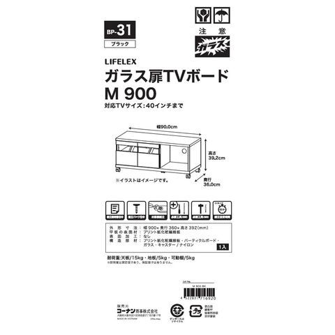 LIFELEX ガラス扉TVボード M 900 BKのレビュー
