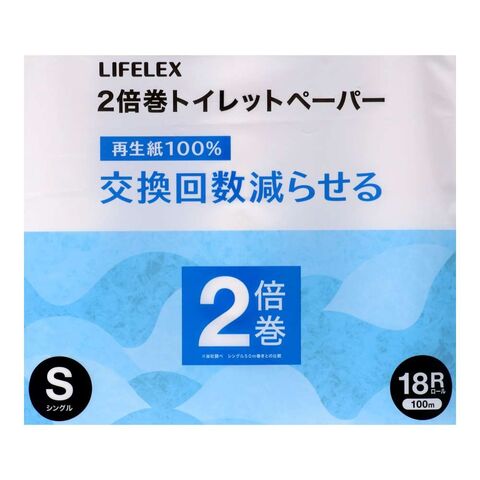 LIFELEX トイレットペーパー18R 再生紙2倍巻 シングル100m ホワイト ×4個セット