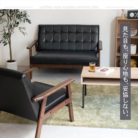 LIFELEX レザー調木肘ソファS トゥルビネ BK/BR6575