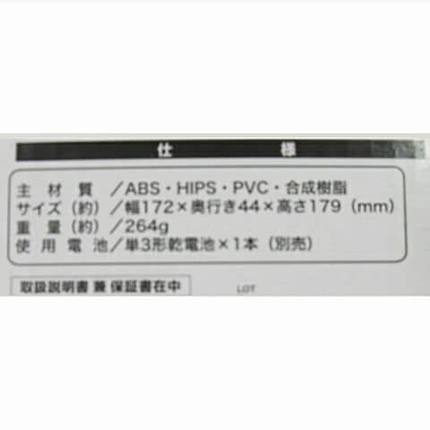電池別売(単3電池×1) 保証書兼取扱説明書在中
