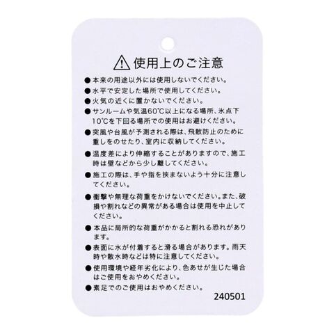 ●本品に局所的な荷重がかかると割れる恐れがあります。