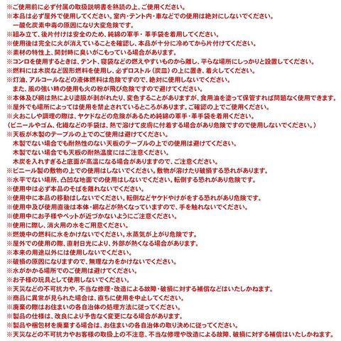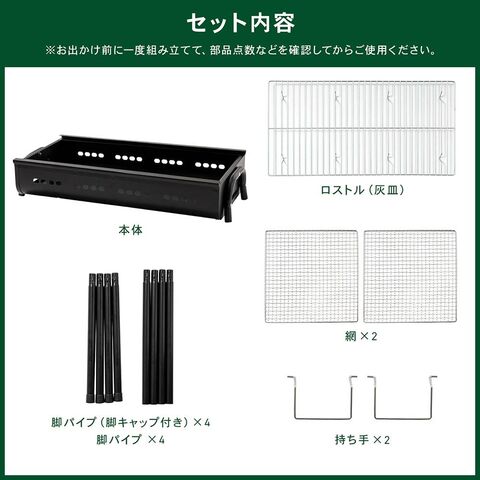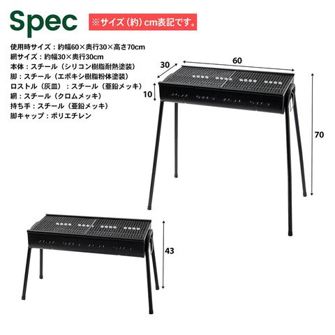 本体:スチール(シリコン樹脂耐熱塗装)脚:スチール(エポキシ樹脂粉体塗装)ロストル(炭皿):スチール(亜鉛メッキ)網:スチール(クロムメッキ)持ち手:スチール(亜鉛メッキ)脚キャップ:ポリエチレン