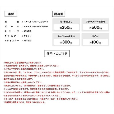 ●耐荷重:250kg(棚板1枚当たり)