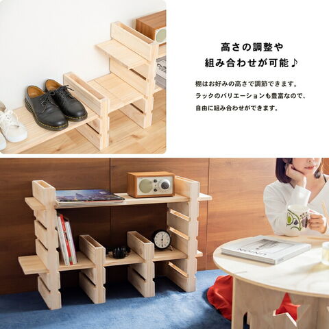 ●棚板を渡してラックにできる。高さ調整も簡単!