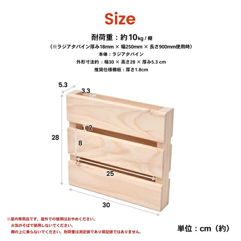 ●耐荷重:約10kg(910×250×18mmラジアタパイン棚板使用時)※耐荷重は測定値であり保証値ではありません