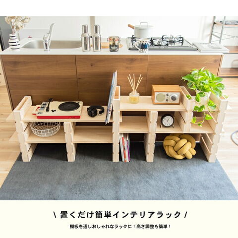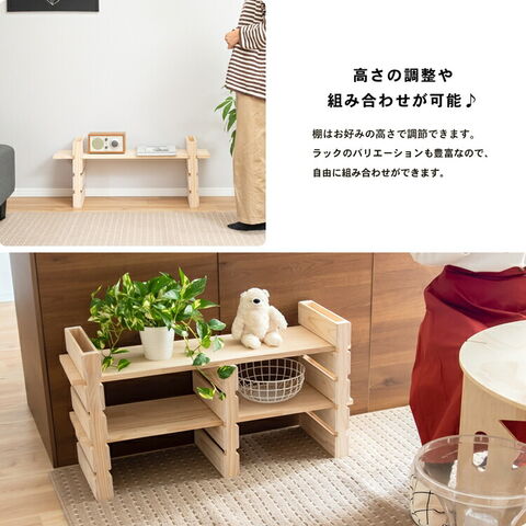 ●棚板を渡してラックにできる。高さ調整も簡単!