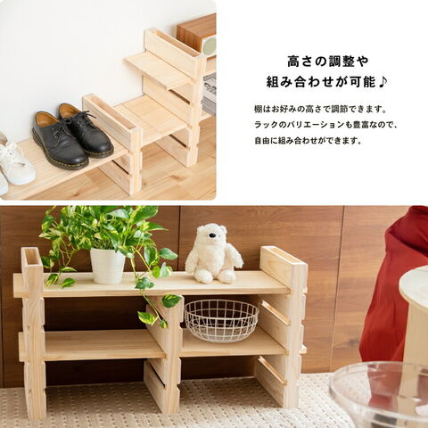 ●棚板を渡してラックにできる。高さ調整も簡単!