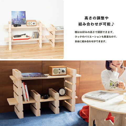●棚板を渡してラックにできる。高さ調整も簡単!