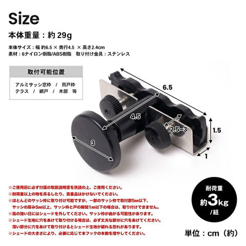 コーナンオリジナル LIFELEX ネジでサッシ取付けるフック オーニング用 ブラック約幅110×奥行30×高さ155mm