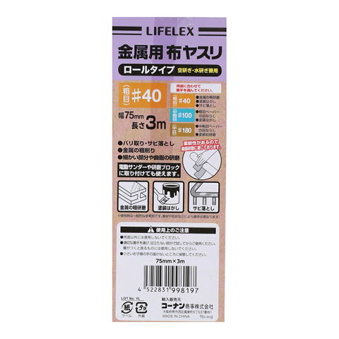 コーナンオリジナル LIFELEX 金属用布ヤスリロール #40 75mm×3m