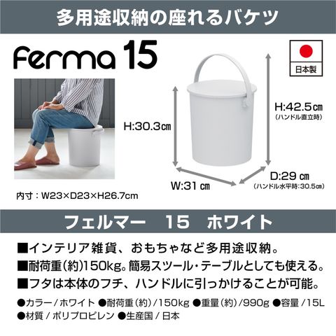 ferma フェルマー15L 座れるバケツ ホワイト 外寸横幅310×奥行305×高さ303mm