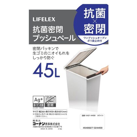 コーナンオリジナル LIFELEX 抗菌密閉プッシュペール 45L ホワイト