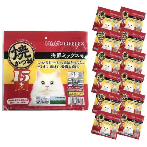 猫 おやつ いなばペットフード 焼かつお 15本入*12個セット 海鮮ミックス味 ウエット フード 猫用 キャットフード トッピング ギフト ご褒美 コーナン限定 お得 大容量 保存料 無着色 保存料不使用