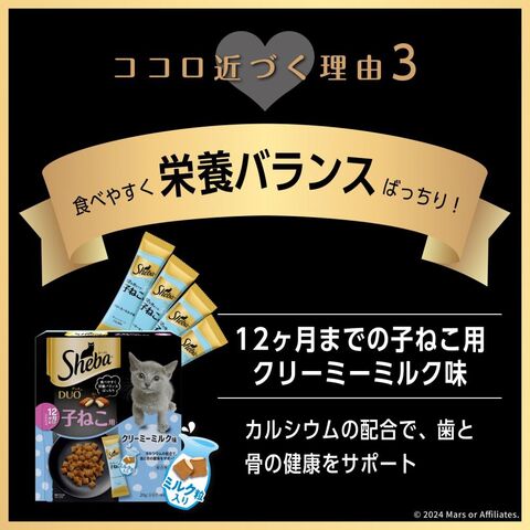 ●デュオの美味しさそのままに、子ねこの必要な栄養が全てバランスよく含まれた総合栄養食。