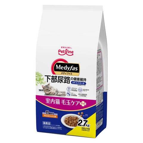 ペットライン メディファス 室内猫毛玉ケアプラス11歳から チキン&フィッシュ味 2.7kg