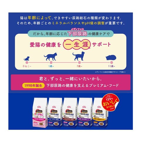 ●マグネシウムとカルシウムの適正バランス、尿pHのコントロール、高い消化吸収性など、それぞれの成長段階に最もふさわしい栄養設計をしています。