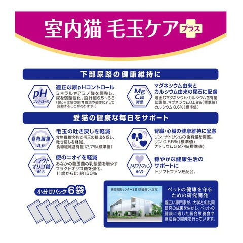 ※この製品は猫専用です。他の動物には給与しないで下さい。与える量は、種類、年齢、性別、運動量、季節などによって変わります。新鮮な水をいつでも好きなだけ飲めるように、別の容器に用意して下さい。