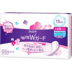 P&G ウィスパー 1枚2役Wガード おりもの&水分ケア パンティライナー 15cc 32枚入り 幅112×高さ133×奥72mm
