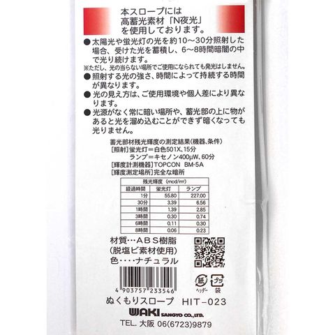 ●蓄光素材使用、太陽光や蛍光灯の光を約10分~30分照射した場合