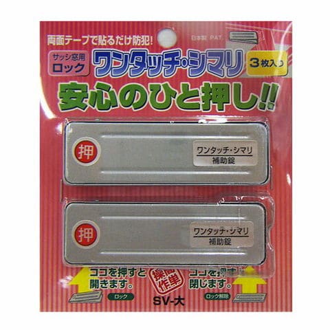 サッシ引戸用補助錠3枚入り。換気、二重ロックに最適。