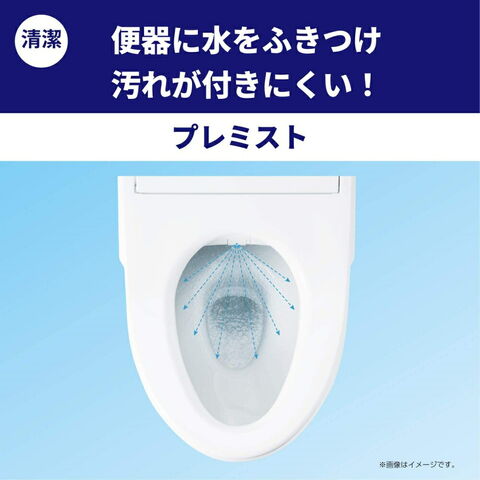 ●プレミスト:トイレ使用前に自動で便器に水を吹きつけ、水のクッションを作ります。汚れがつきにくく落ちやすい技術です