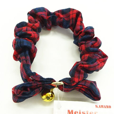 カワノ産業 ねこちゃん用シュシュ フリーカラーNEWチェック Mサイズ レッド