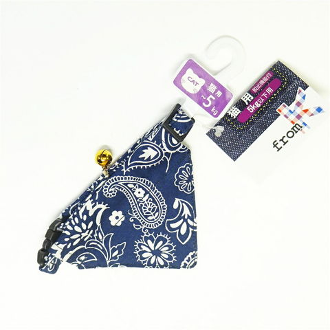ねこちゃんバンダナ首輪 バンダナ柄 ブルー カワノ産業