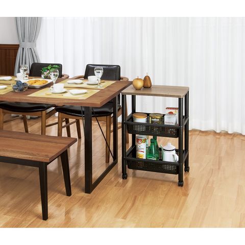 不動技研 ウッドスタイルワゴン F-49001 BK 幅45.5×奥行き29×高さ70