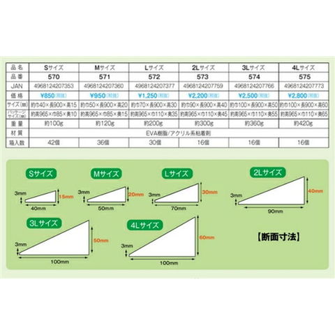 EVA樹脂のため素材の劣化・伸縮・硬化・ひび割れ・色落ちが発生する可能性がありますので、定期的に確認して交換を行ってください。