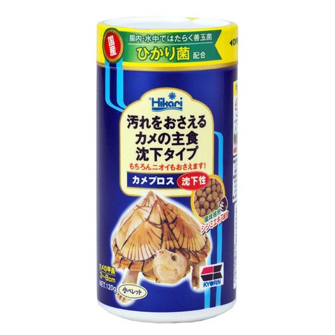 ●“ひかり菌”と茶葉の効果で水の汚れと臭いを抑えるカメの総合栄養食です。