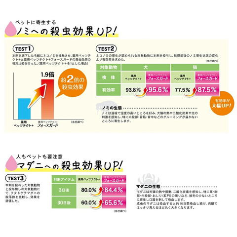 ●ノミへの殺虫効果UP、マダニへの殺虫効果UP、蚊の忌避効果UP、安全性に配慮。