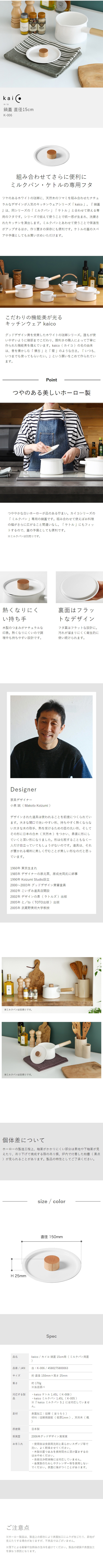 [ kaico/カイコ 鍋蓋 ]カイコ かいこ 琺瑯 ホーロー ほうろう 小泉誠 ナベフタ なべふた フタ ふた 蓋 鍋蓋 鍋ふた 鍋 調理器具 ケトル ミルクパン キッチン雑貨 キッチン 雑貨 おしゃれ インテリア