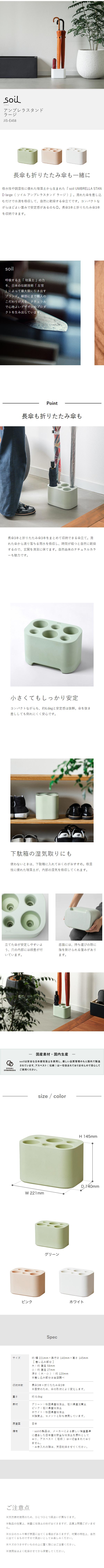 [ soil アンブレラスタンド ラージ ]傘立て 珪藻土 日本製 アスベスト不使用 傘立 傘たて かさ立て かさたて 傘 カサ 折りたたみ傘 折り畳み傘 長傘 吸水 コンパクト 玄関 シンプル おしゃれ レインラック アンブレラホルダー ソイル