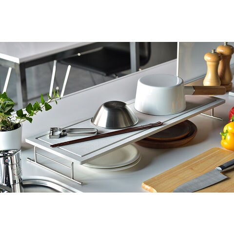 [ KAWAKI シンクラック ワイドタイプ ]水切りラック シンク上 水切り シンク上水切りラック 吸水 吸水トレー シンク上 収納 水切りトレイ シンク横 水切りトレー 省スペース 吸水マット おしゃれ スリム 日本製 モイス moiss カワキ ボード