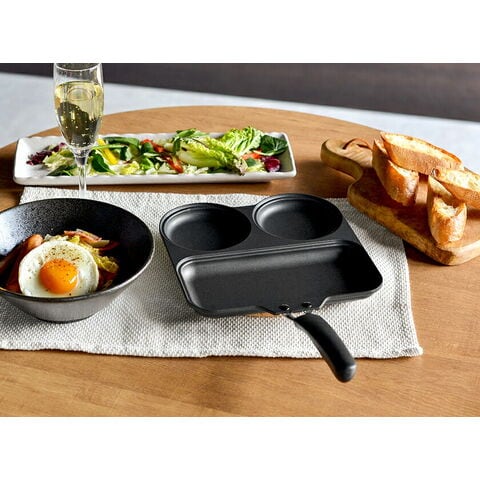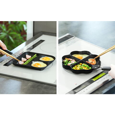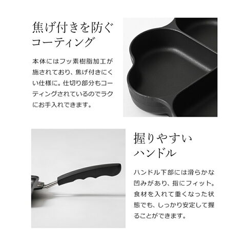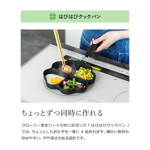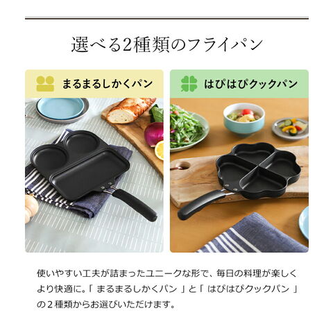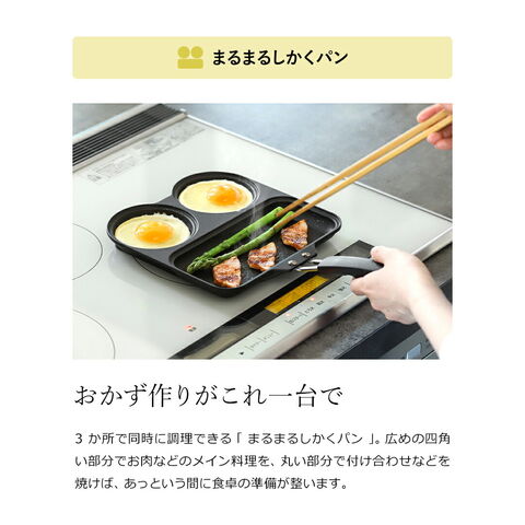 [ まるまるしかくパン/はぴはぴクックパン ]フライパン 仕切り付き IH対応 IH ガス 目玉焼き 2個 お弁当 時短 日本製 ハート形 焦げ付きにくい トリプルパン 朝食 目玉焼きフライパン お弁当 子供 一人暮らし 料理 コンパクト 仕切り