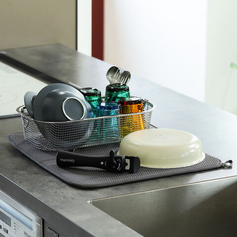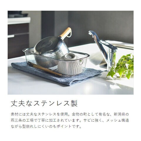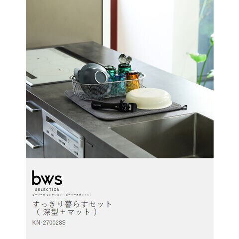 [ bws SELECTION すっきり暮らすセット(深型+マット) ]水切りカゴ 深型 水切りラック コンパクト ステンレス 食洗機 水切りマット 吸水 速乾 洗い物かご 洗い物カゴ バスケット 水切り ザル キッチン 台所 収納 シンプル 日本製 燕三条 ビーワーススタイル