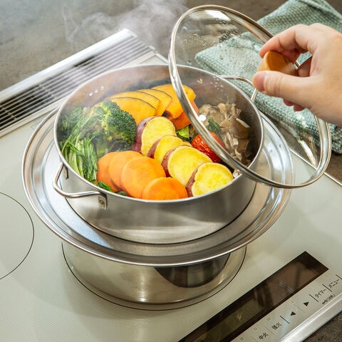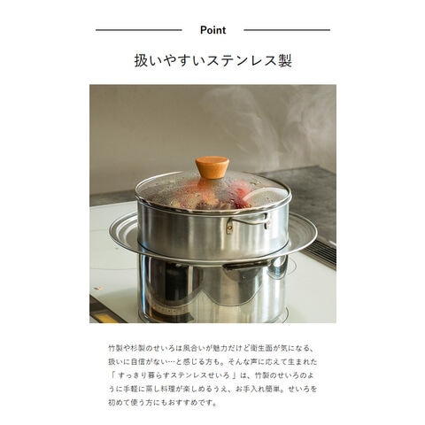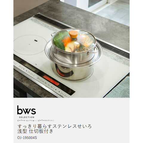 [ bws SELECTION すっきり暮らす ステンレスせいろ 浅型 仕切板付き ]せいろ セイロ 蒸し器 スチーマー ステンレス せいろ蒸し 20cm 蒸篭 蒸籠 中華せいろ 中華セイロ ガラス蓋 ふた付き 温野菜 茶碗蒸し 肉まん 焼売 蒸し料理