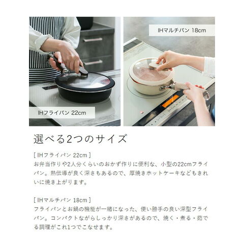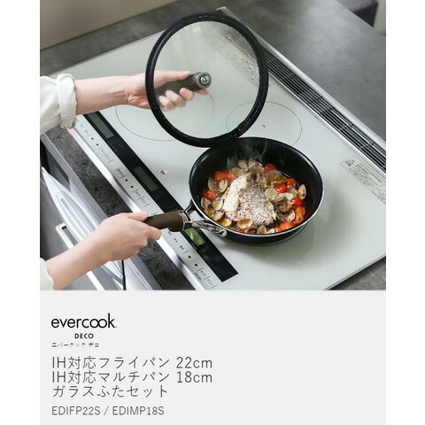 [ evercook DECO ガラスふたセット フライパン 22cm / マルチパン 18cm ]エバークック セール フライパン マルチパン 蓋付き ふた IH対応 ガス火対応 フライパン 深型 フタ付 焦げ付かない おしゃれ エバークックデコ