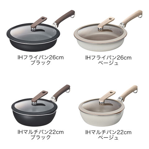 [ evercook DECO ガラスふたセット フライパン 26cm / マルチパン 22cm ]エバークック フライパン マルチパン 蓋付き ふた IH対応 ガス火対応 フライパン 深型 フタ付 焦げ付かない おしゃれ エバークックデコ