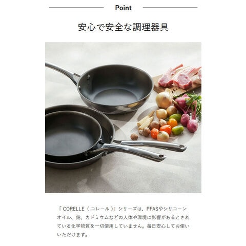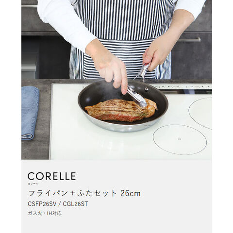 [ Corelle 本体+フタセット 26cm ]10年保証 コレール フライパン デュラナノ 長持ち 蓋 セット IH ガス IH・ガス火対応 ノンスティック PFASフリー 食洗機 オーブン フタ ドウシシャ DuraNano 長持ち こびりつきにくい